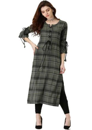 Libas Women Checkered Cotton Rayon Blend Straight Kurta