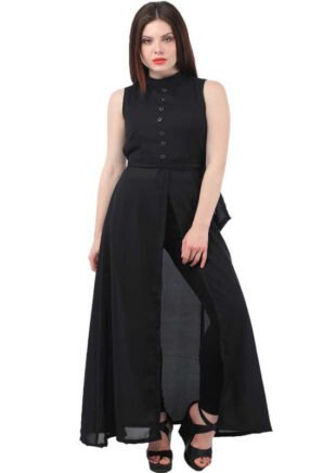 KMB Women Solid Poly Georgette Straight Kurta (Black)