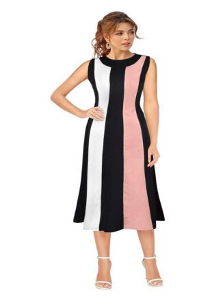 Miss Rare Women Skater Black, White, Yellow Dress