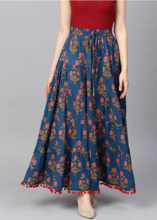 Vara Women Floral Print Flared Blue Skirt