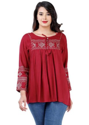 Women Embroidered Rayon Cape Top Kurta (Maroon)