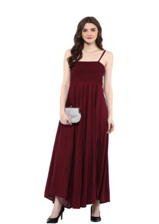 Wari Solid Cotton Rayon Blend Stitched Straight Gown (Maroon)