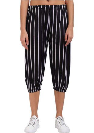 Women’s Cotton Blended Striped Capri | Stretchable 3/4 Women’s Casual Capris Women Black Capri