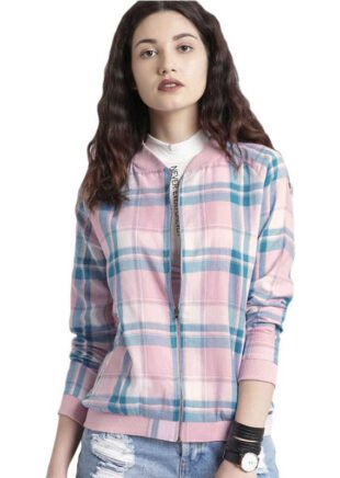 ROADSTER Full Sleeve Checkered Women Bomber Jacket