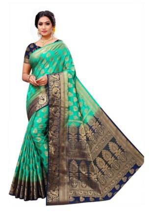 Printed Banarasi Jacquard, Art Silk Saree (Green)