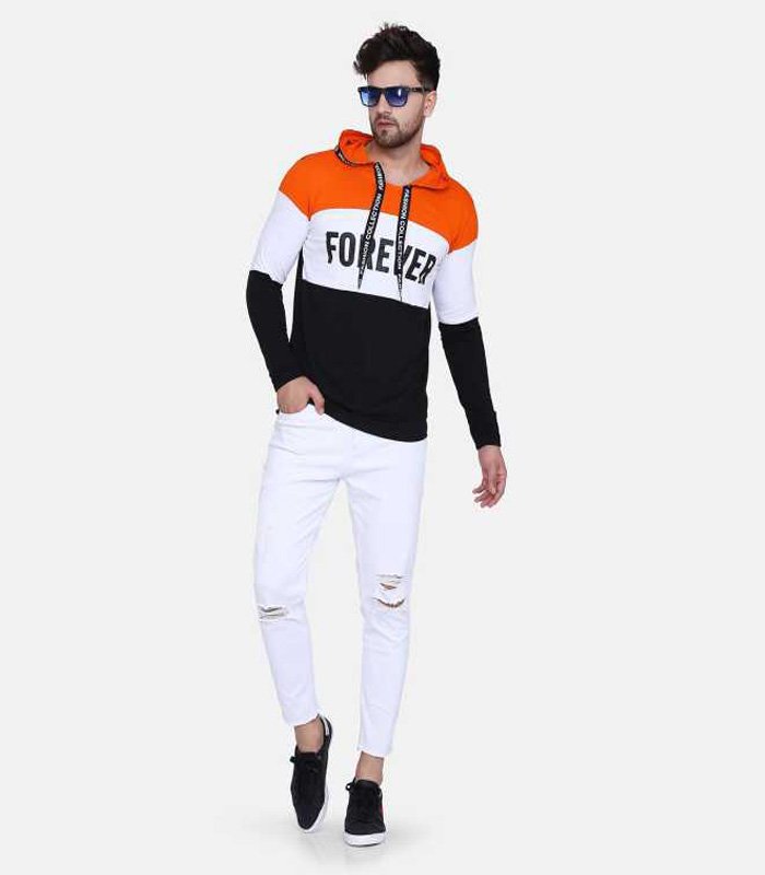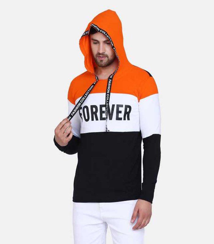 Men Hooded Neck Orange, White, Black T-Shirt