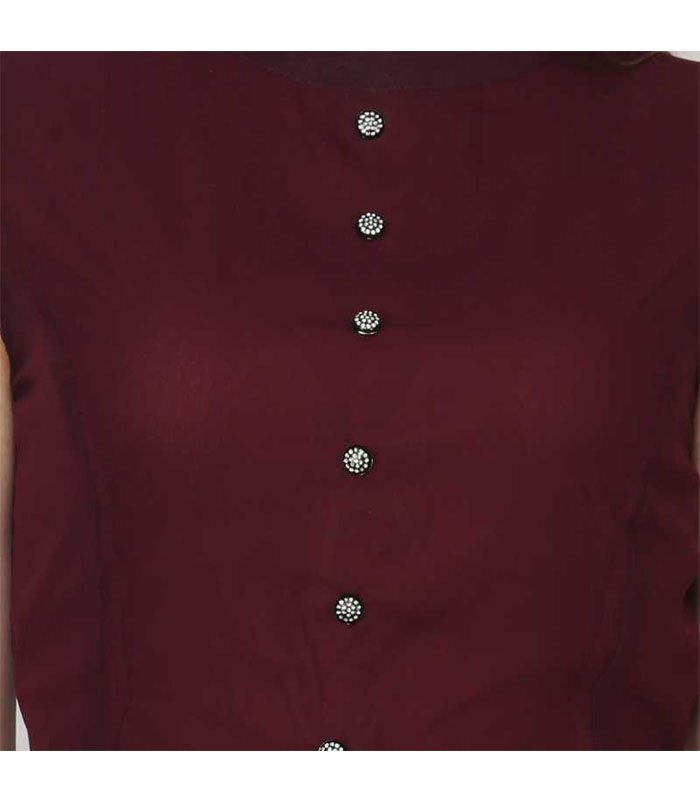 Pratyush presents this Brown Color Mandarin Collar Sleeveless Solid most gorgeous pure Georgette Fabric.This is a comfortable, versatile kurti, with exquisite and chic hand embroidery. Wear this Maxi Front Slit New Trendy Kurti with legggings or jeggings or an elegant and modern look.Lining inside the kurti,Length-52″,Size-S to 2XL.