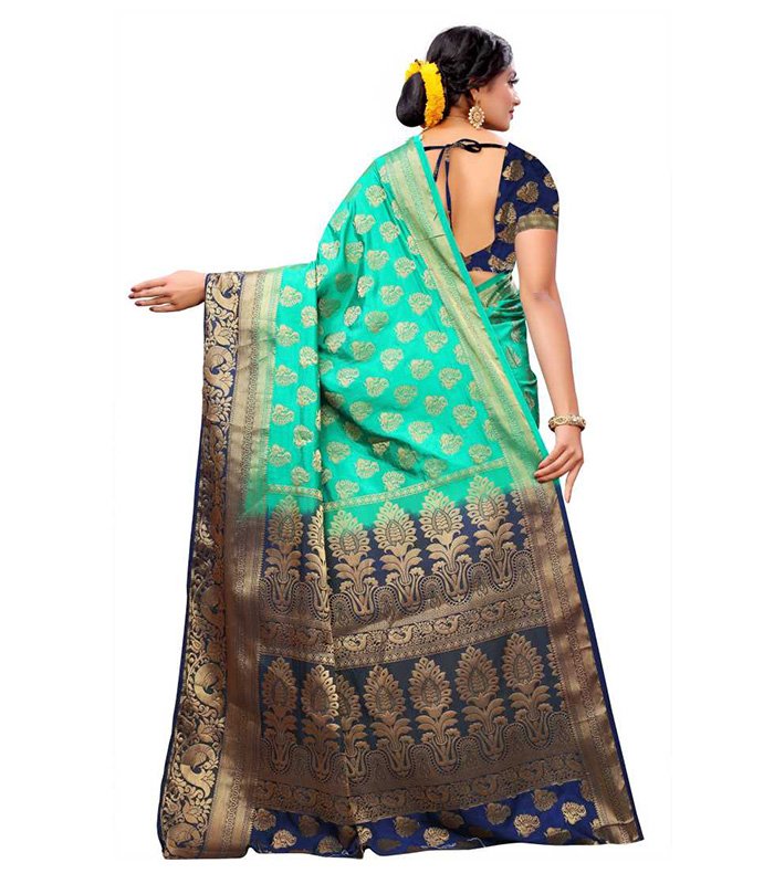 Printed Banarasi Jacquard, Art Silk Saree (Green)