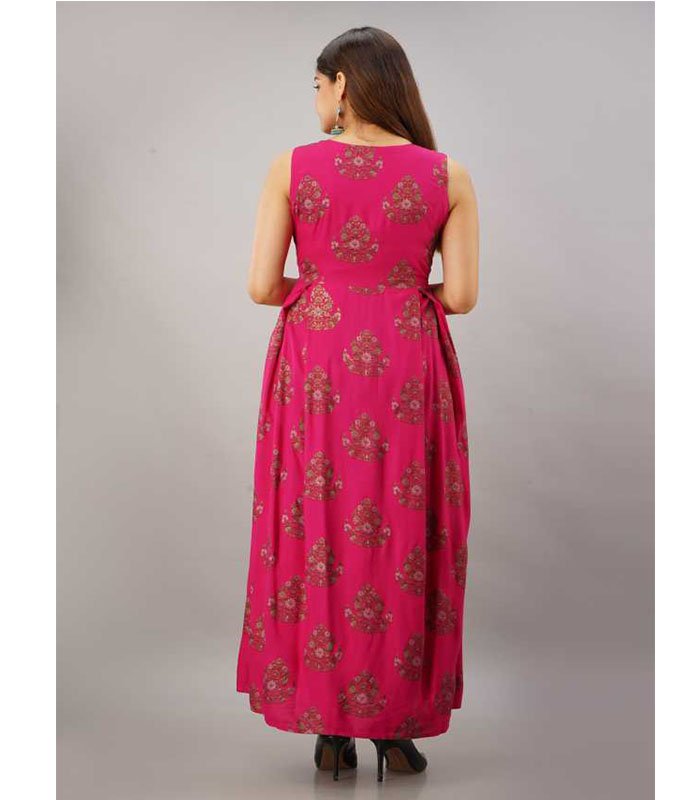 Shobha Women Floral Print Rayon Frontslit Kurta (Pink) quantity