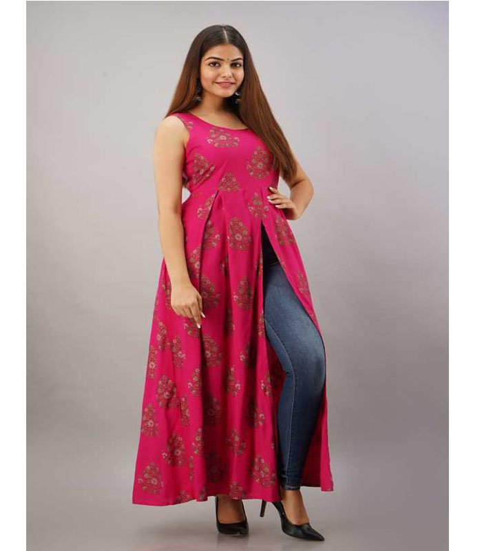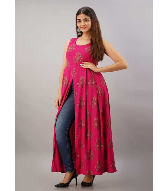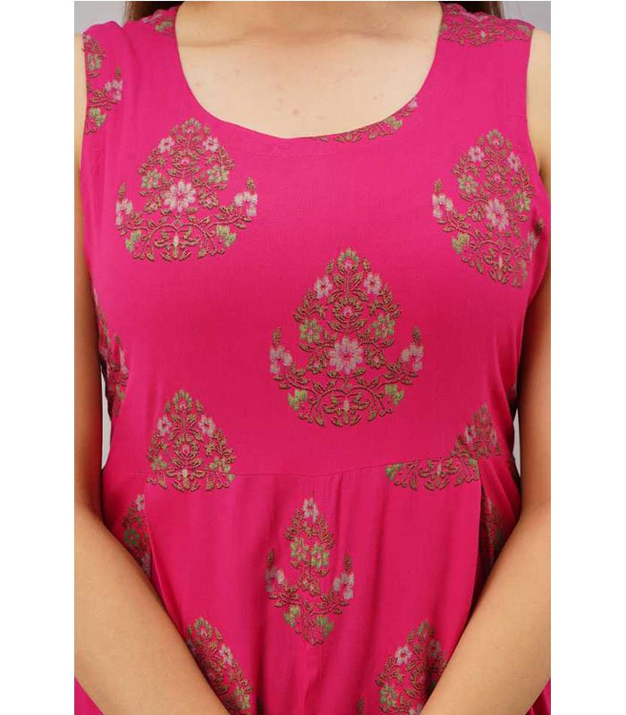 Shobha Women Floral Print Rayon Frontslit Kurta (Pink)