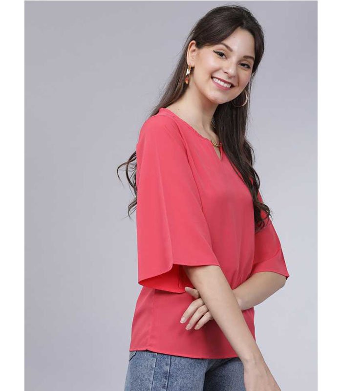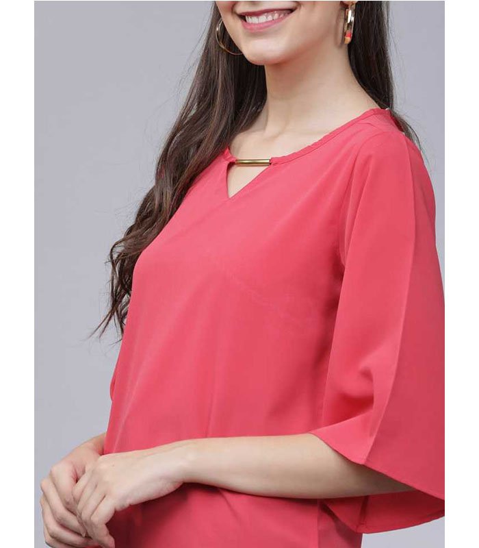 TT Casual 3/4 Sleeve Solid Women Pink Top quantity